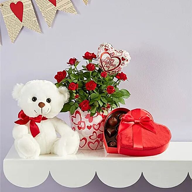 Heartfelt Love Rose Plant With Teddy