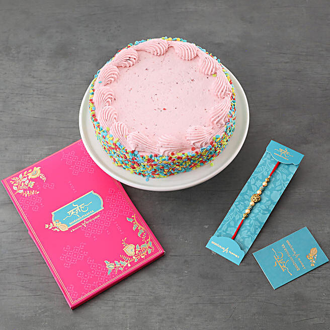 Lion Face Rakhi And Strawberry Funfetti Cake