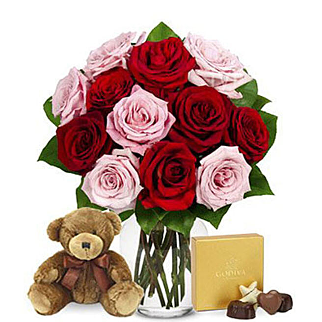 Love Redefined Red And Pink Roses Godiva Bear