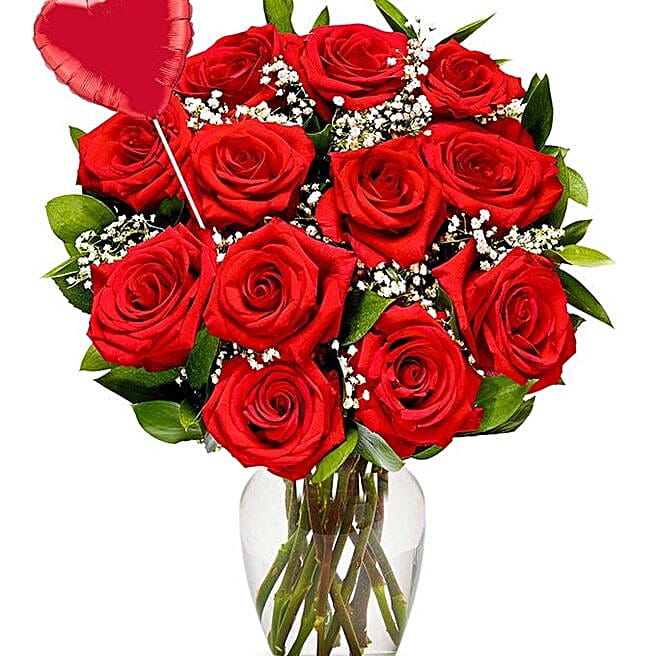 Luxury 12 Red Roses Bouquet And Heart Balloon