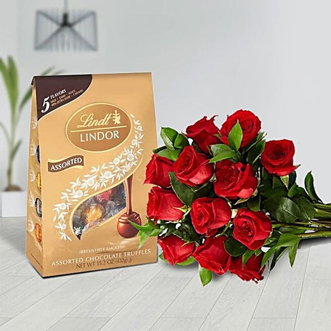 Red Roses Bouquet And Lindt Truffles