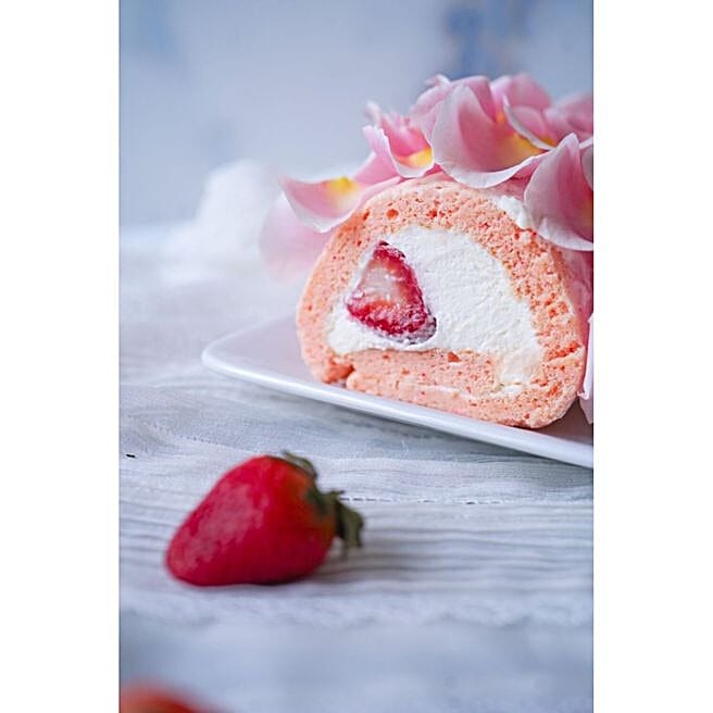 Rosy Strawberry Cake Roll