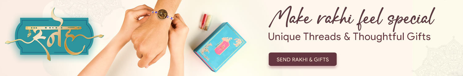 FNP has launched a new brand called Sneh. As the name suggests, it means to love but one that exists between brothers and sisters. The sibling bond is extraordinarily unique as it consists of endless arguments and fights while at the same time also has an immense flow of love and care. In India, a Hindu festival called Raksha Bandhan honors this sibling relationship most delicately. So, FNP has given this the name of Sneh: Bandhan Pyaar Ka. Explore the vast array of stunning Sneh rakhis available on the website. Each one of them has been beautifully and meticulously crafted by our kaarigars, who have woven bright threads and added stylish stones to the rakhis. These rakhis come in singles and sets of three, four, and five rakhis. In addition to these elegant rakhis for Raksha Bandhan, you can browse through the exciting combos. They consist of sweets, chocolates, dry fruits, cake, and plants. We don't provide rakhis only for brothers but for sisters and sisters-in-law. So, stop wasting any more time and place an order for these vibrant and charming Sneh rakhis to make your Raksha Bandhan the best so far.